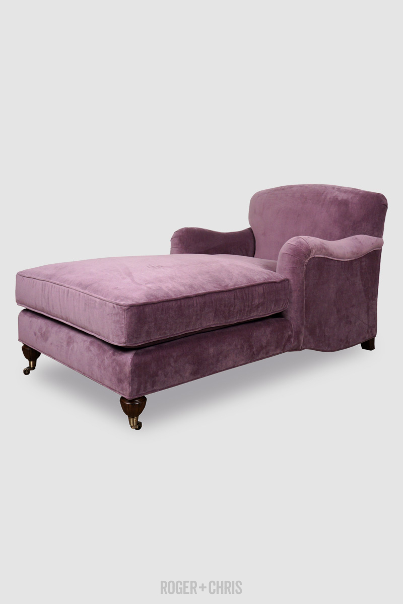 Basel Tight Back English Roll Arm Chaise In Cannes Thistle Purple Velvet Roger Chris